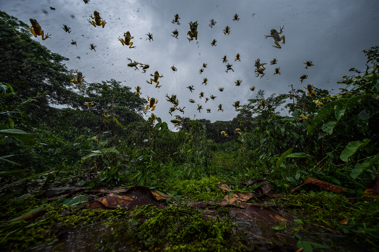 - Transporte: Los animales atrapados –generalmente peces, ranas o pequeños invertebrados– son elevados a grandes alturas dentro de la nube tormentosa. Las corrientes de aire pueden transportarlos a distancias considerables.